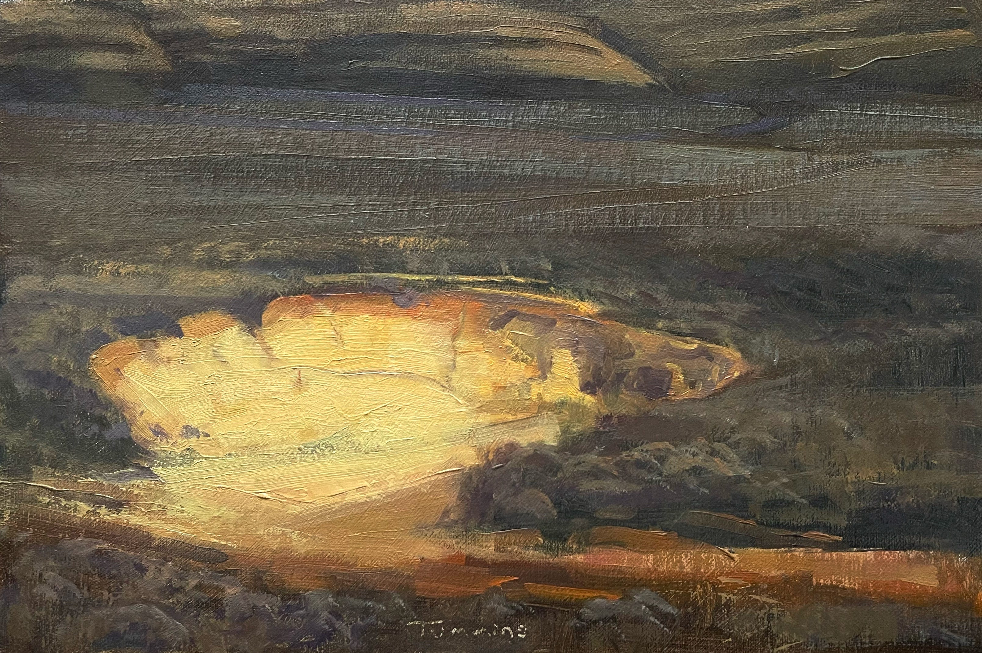 Fast forward to the making of the practice sketch. What my photos showed and what my heart remembered were very different. My experience was rich and full, whereas the photograph was flat. The words “pot of gold” kept coming into my mind, so I subjugated everything about the scene to those words. Another phrase rose up - “treasure for the poor” taken from the Townes van Zandt song “If I Needed You.” The beautiful, simple, stripped-down song contained the line, “a treasure for the poor to find.”