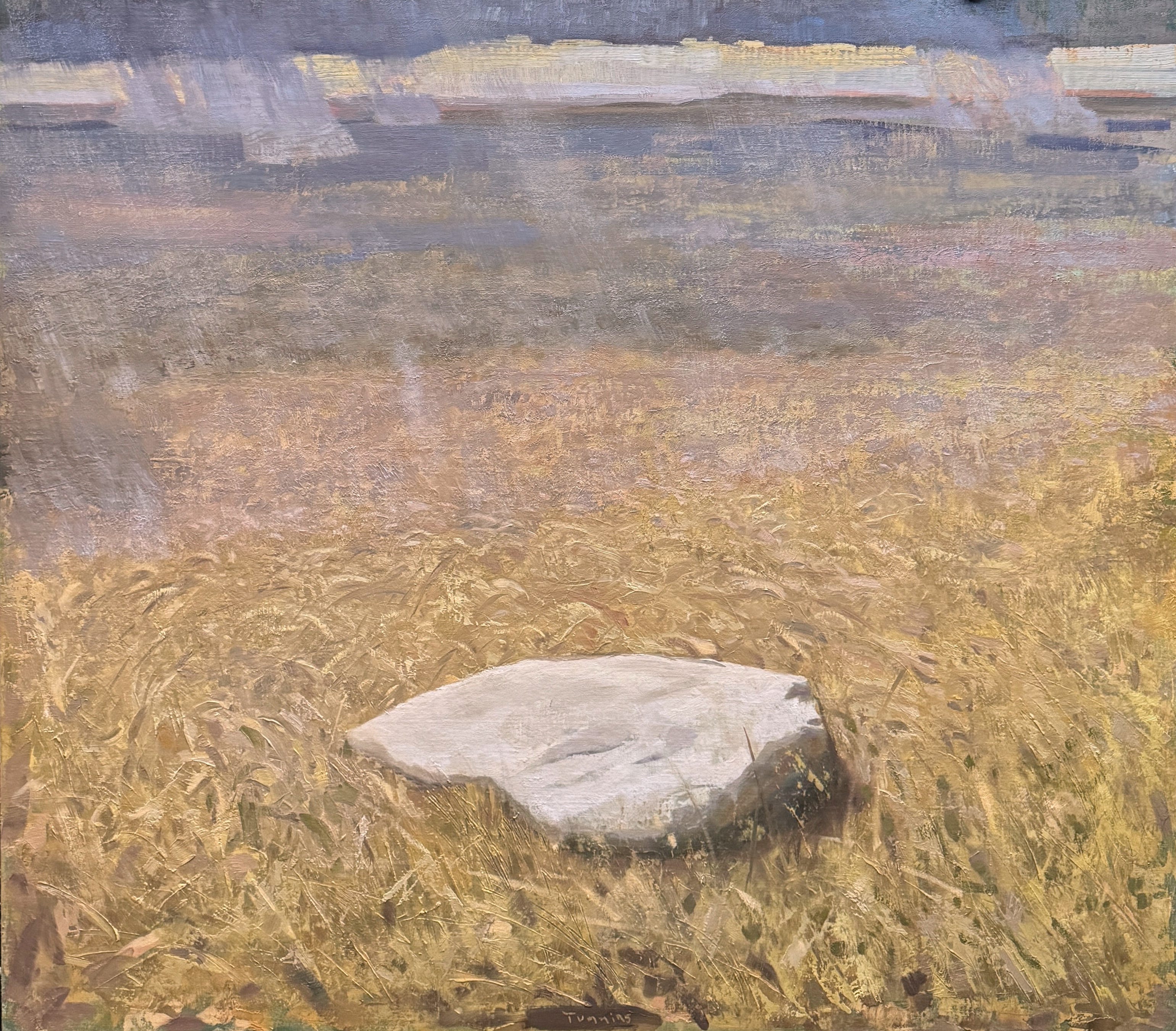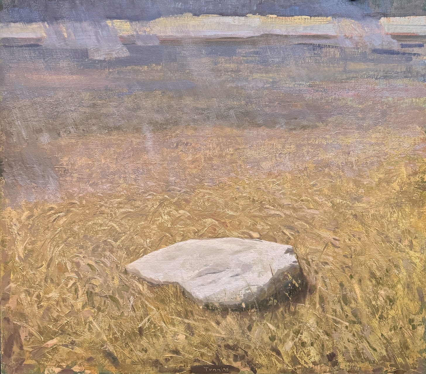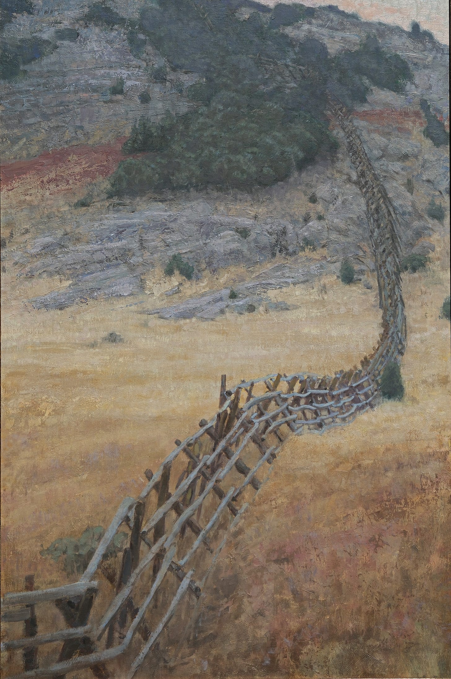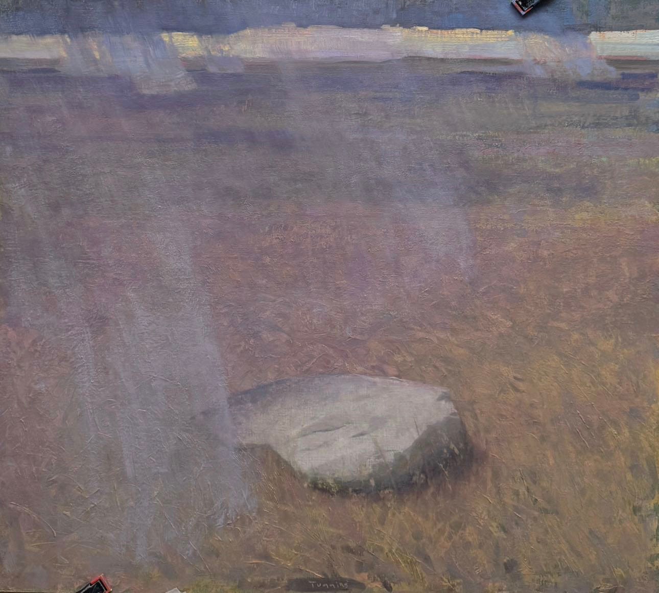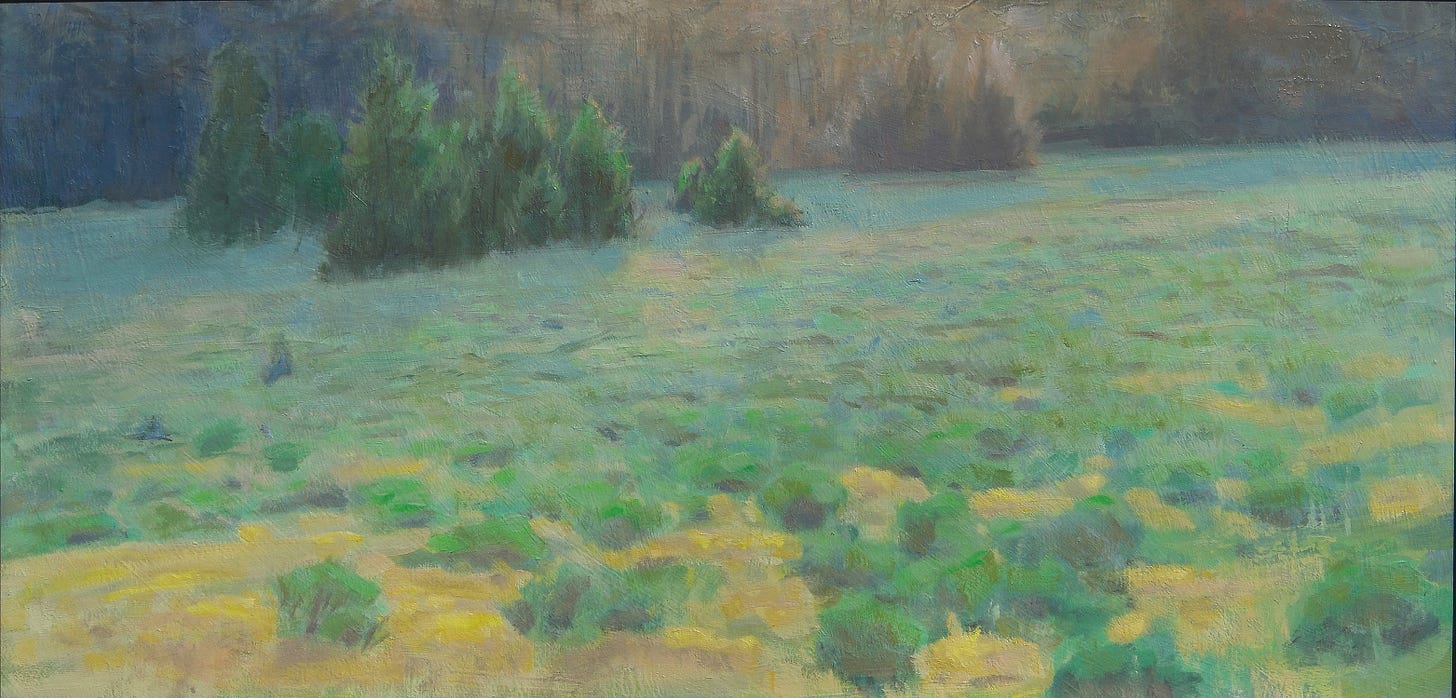It was too much to do before a looming deadline, too many competing ideas never worked out beforehand, so I set it aside and started another, much simpler painting that I knew I could complete for the show in Denver. That painting is of a rocky cliff outside of Cody, Wyoming that is colorful and clear, a candy-like distraction that any viewer would stop for a second to view.